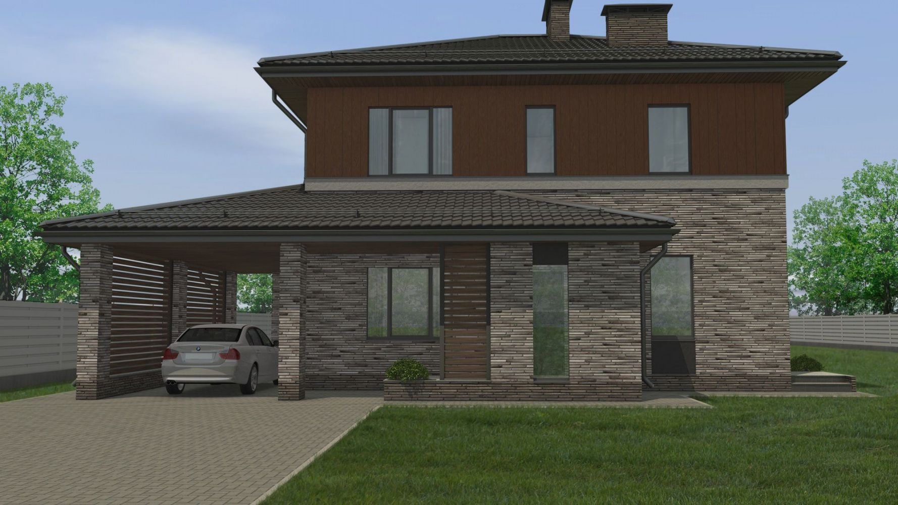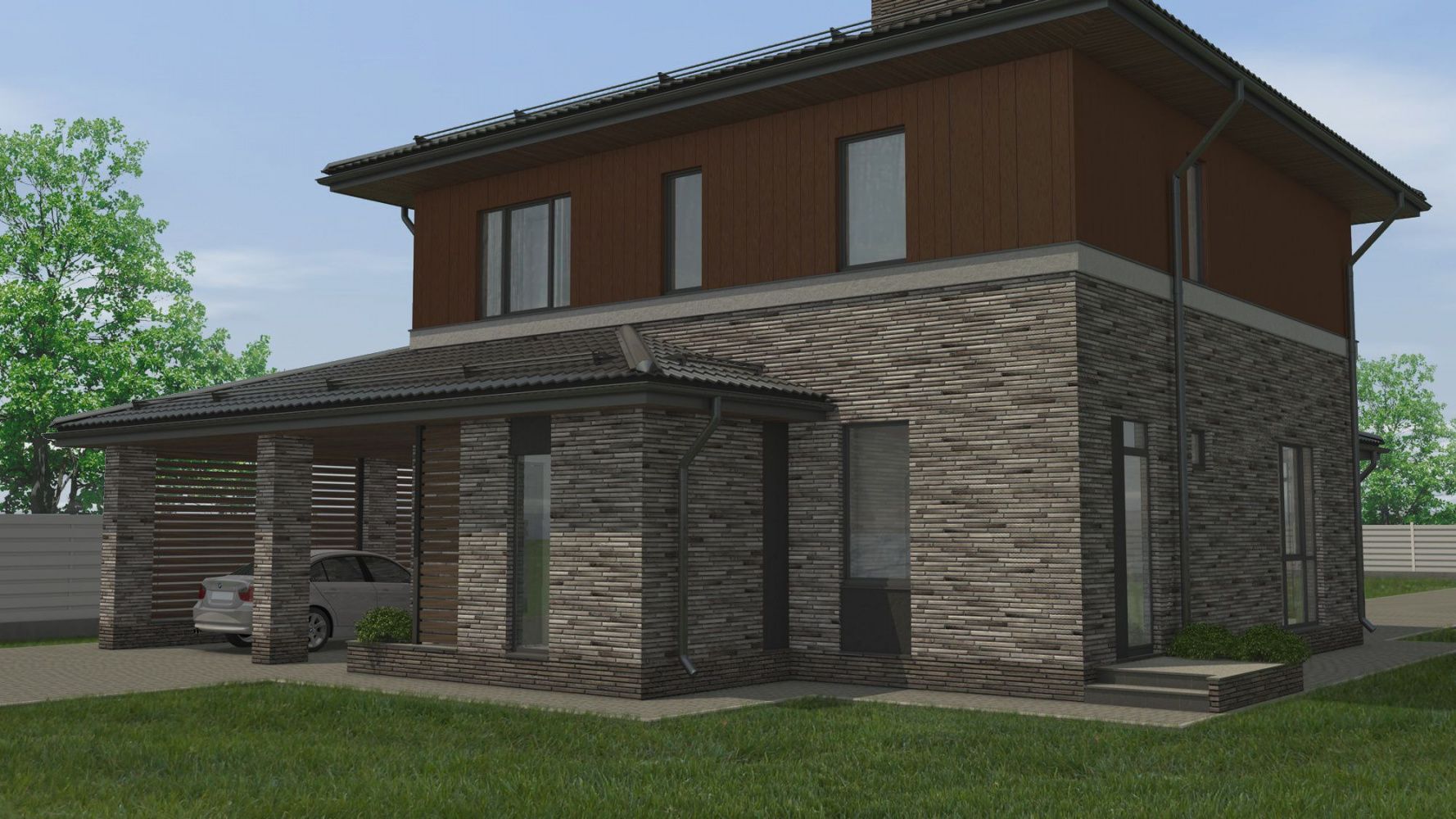 • Стены (2 этаж) - Планкен/кедрал коричневый/С30 Теплая земля